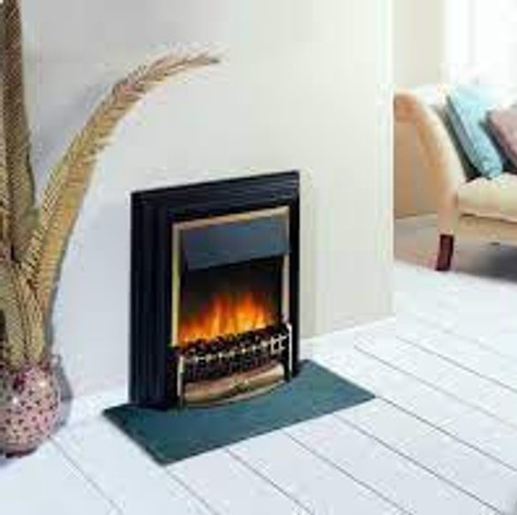 The Dimplex CHT20 is a free standing Electric heater in the form of a Cheriton fire. The Dimplex CHT20 Electric fire comes with Optiflame effect and real coals. No inset depth is required, this classic looking electric fireplace backs smoothly into the wall of your living room making it easy to setup and requiring no structural work of any kind. Freestanding fire with Optiflame effect and real coals. Designed to fit “flat-to-wall”. Black and brass-effect finish.