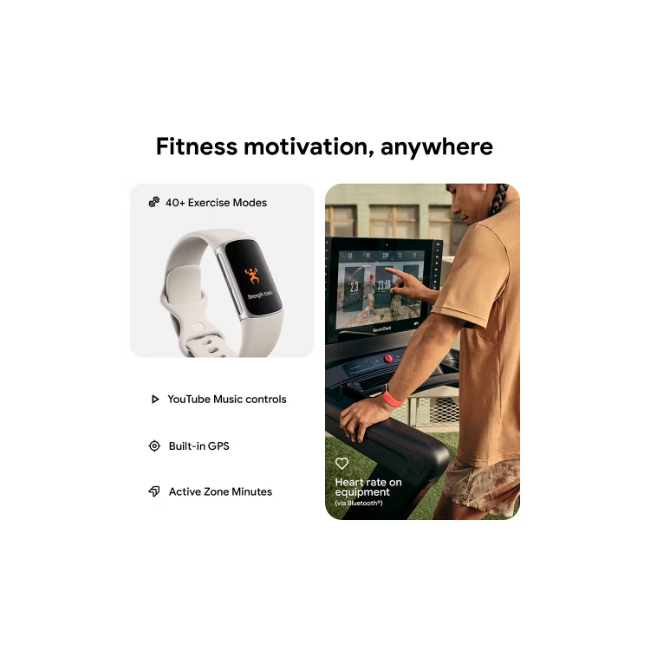 Charge 6 helps you stay on track with your goals, thanks to advanced health sensors that, combined with a new machine learning algorithm, bring you our most accurate heart rate tracking on a Fitbit tracker yet,2 and the ability to connect to compatible gym equipment and fitness apps to see your real-time heart rate during workouts.3 Plus, it’s helpful when you’re on the go with its new haptic side button, up to 7 days of battery life,4 and the ability to do even more right from your wrist — like control YouTube Music and use Google Maps and Wallet.5