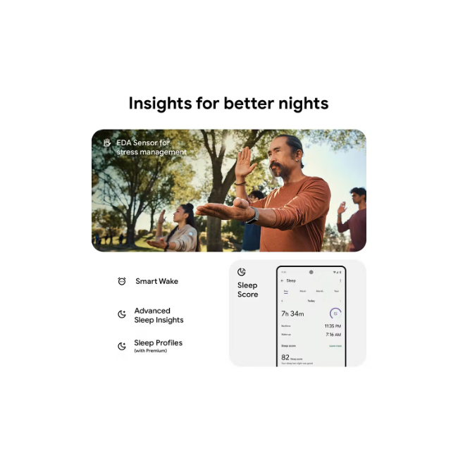• Manage your stress with an electrodermal activity (EDA) scan to measure your body’s physical responses in the moment and get actionable guidance on how to manage your stress. Check your Stress Management Score to see how well your body is handling stress and make a plan for the day.