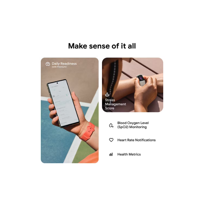 • The all-new Fitbit app helps you focus on your goals and understand the metrics that matter to you like Daily Readiness Score,7 a Premium feature that helps you understand your body’s readiness to tackle a tough workout or take a day to recover, with daily activity recommendations based on your score.