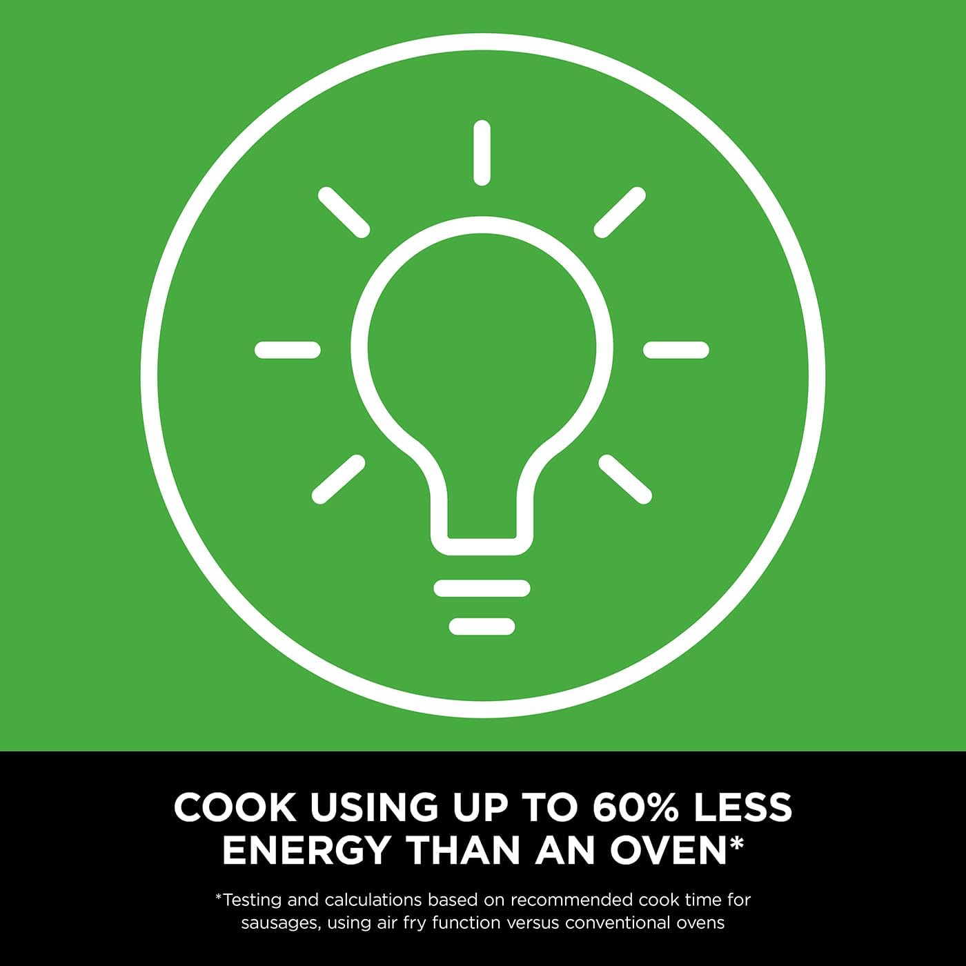 Fast and efficient, this Ninja air fryer cooks using up to 60% less energy than an oven**, so you could save money on your energy bills without compromising on home-cooked food.