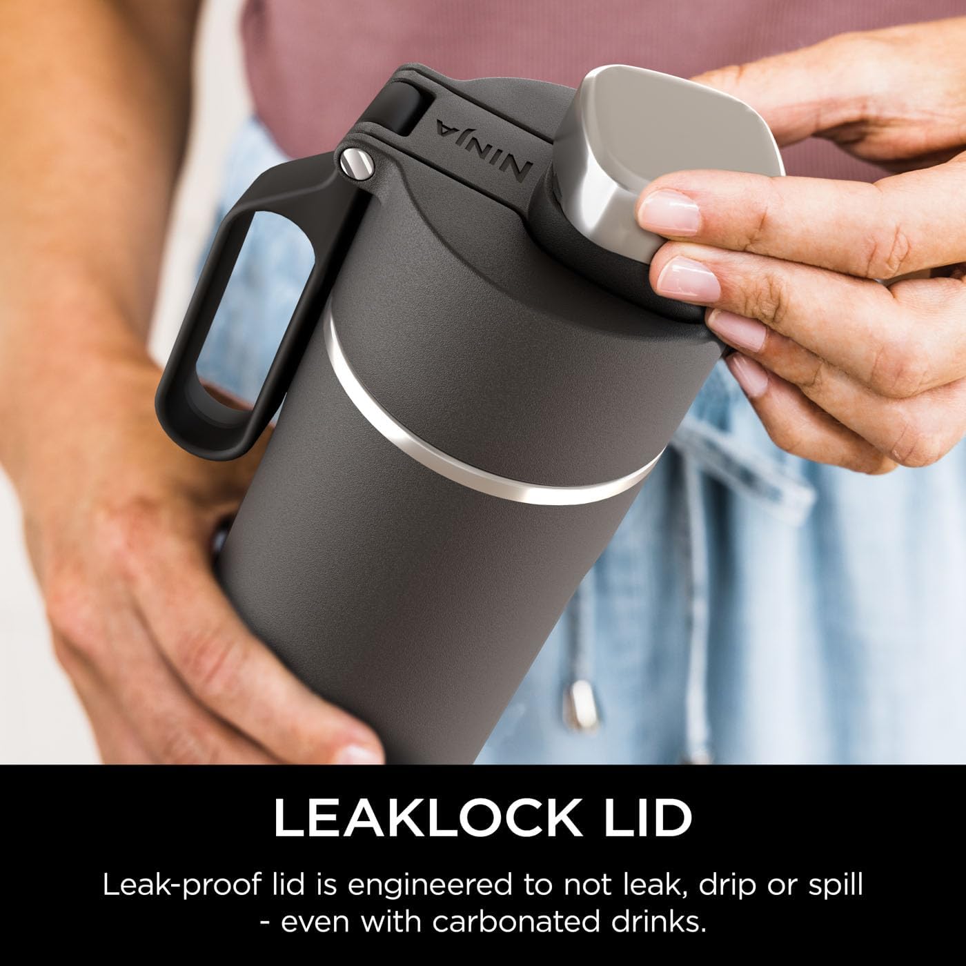 Ninja’s engineers have created a travel bottle built for optimum performance and comfort. The smooth, round spout allows you to drink comfortably – whether you need a quick sip or big gulp. The lid even snaps into place to ensure it won’t move as you drink – perfect for taking a quick one-handed sip during a jogging or workout session.