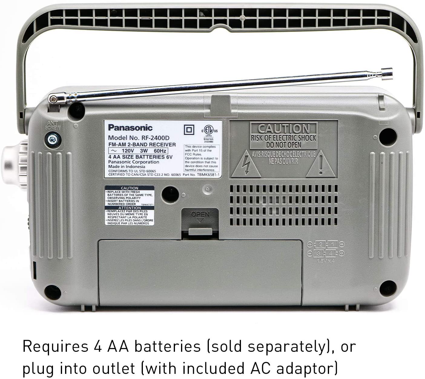 • PERFECT FOR CAMPING, SEVERE WEATHER, OR POWER OUTAGES: Use with batteries or plug–radio comes with an AC adaptor, and also takes 4 batteries (AA/LR6/R6)