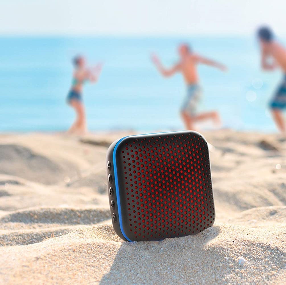 This portable Bluetooth speaker is IPX7-rated—which means it can withstand total immersion in water up to 1 m deep for up to 30 minutes. You can party in the shower, by the pool or even in the pool! The wireless range is 20 m.