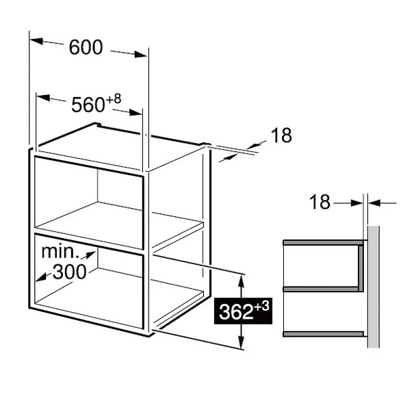 Suitable for wall unit W600 x D 340 x H 380mm and full-depth unit installation. See the user manual for details.