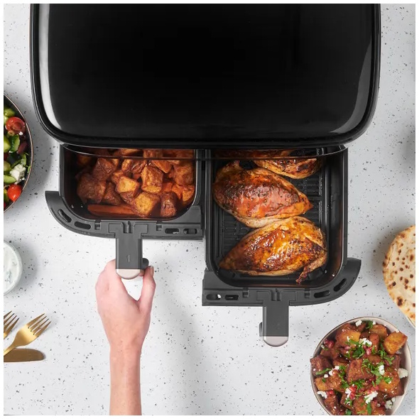 Whip up delicious meals for you and your family in no time. This double basket air fryer cooks your favourite dishes in half the time it takes a traditional oven, letting you spend less time in the kitchen and more time enjoying your food.
