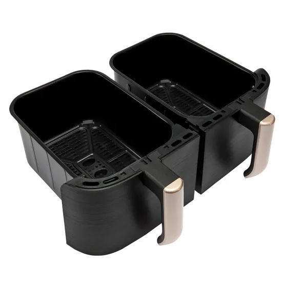 With Champagne accents to lift the classic black housing, this double basket air fryer will enhance your countertop and complement any kitchen style.