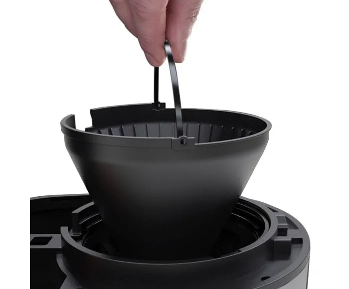 It has a 24 hour programmable timer that allows you to set your machine to have your coffee ready and waiting first thing in the morning or after your evening meal, whenever you like it best. A blue illuminated light ring comes on during brewing and stays on during the ‘keep warm’ stage.