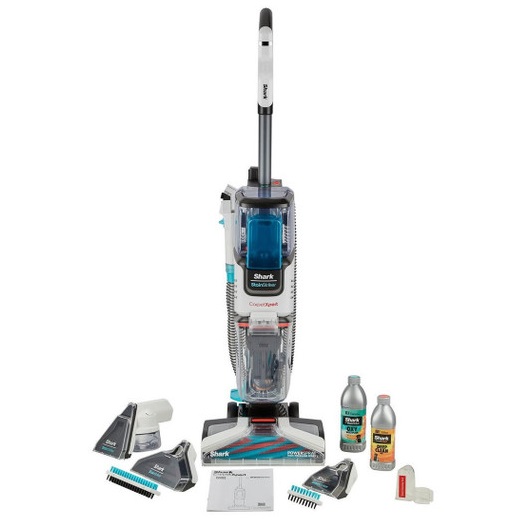 Introducing the Shark CarpetXpert Deep Carpet Cleaner with StainStriker, combining a powerful deep carpet cleaner with a built-in stain and spot cleaner for supercharged stain elimination.