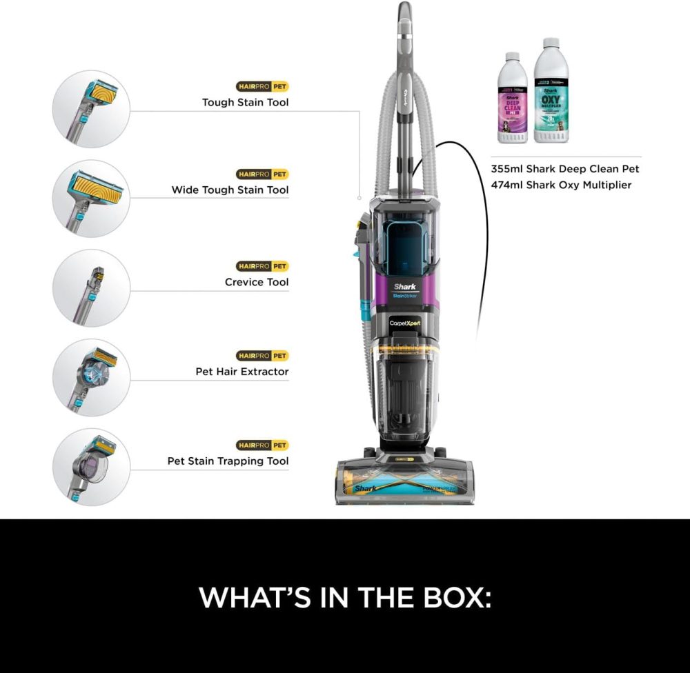 • Shark CarpetXpert Deep Clean Pet Formula removes layers of ground-in dirt and grime – even smoke and pet urine.