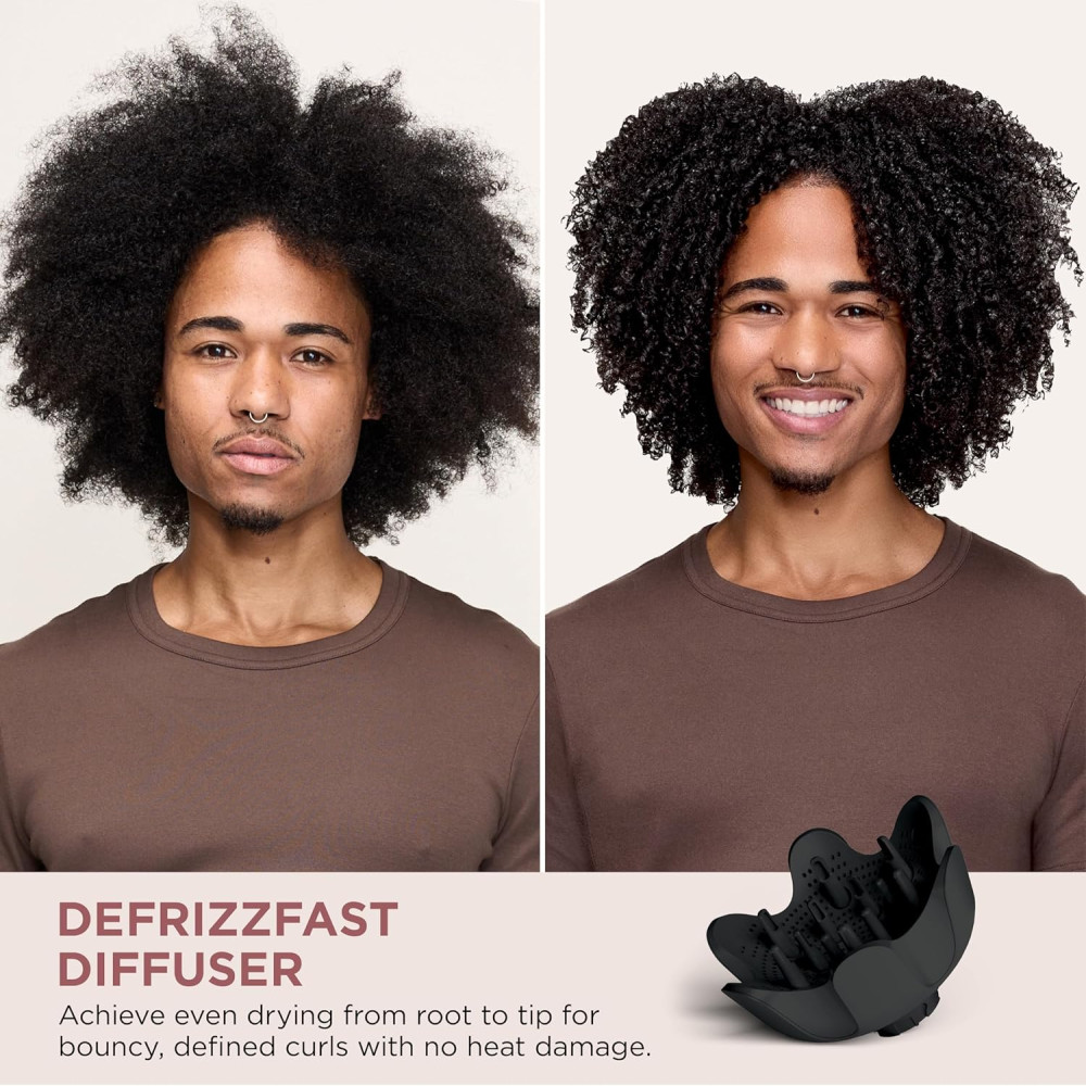 DefrizzFast Diffuser: Even drying from root to tip. The diffuser features retractable prongs for less heat on the scalp for shorter finer hair and extendable prongs for longer, thicker hair to lift at the root. Best for defined curls.