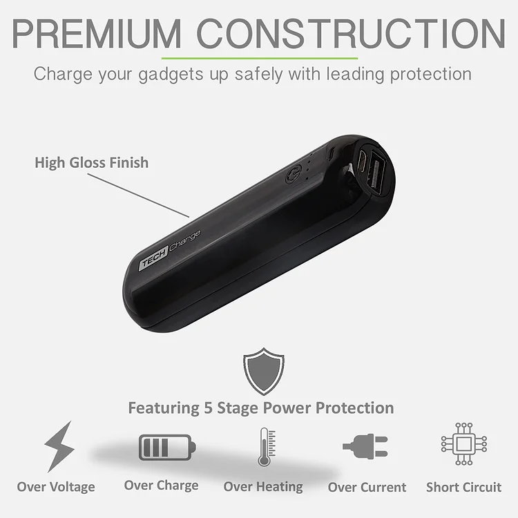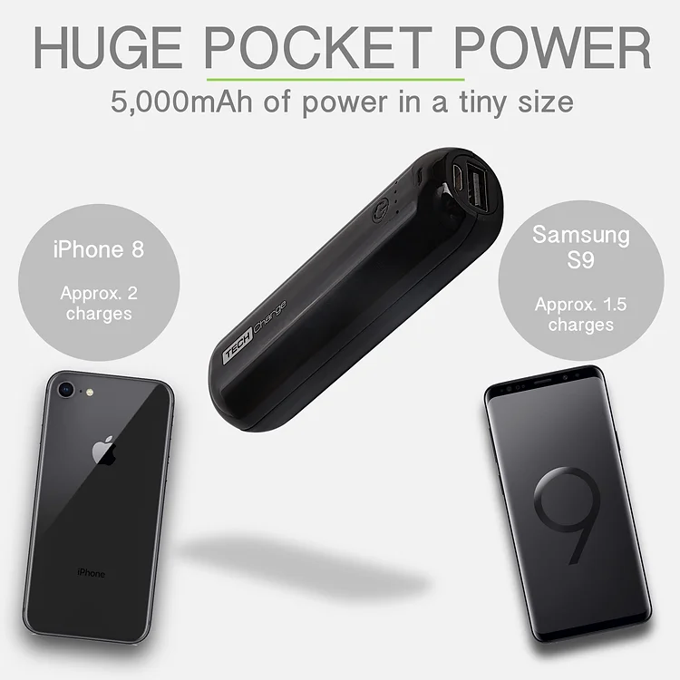 5,000mAh ultra compact and lightweight pocket sized power bank at just 90g. Built with 2A fast charging technology to get up to 3 fast charges from one full charge of the power bank to keep your gadgets going for longer. 4 LED lights show the power remaining. Featuring 5 stage power protection for enhanced safety and a 2 year warranty.