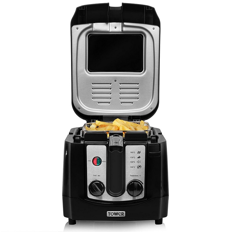 With an adjustable thermostat, generous 3 litre oil capacity and non-stick, enamel, inner oil pan, this easy clean 3 litre Deep Fat Fryer is versatile, spacious and extremely simple to clean. The non-stick coating prevents debris from adhering to the inside of the fryer, while a durable frying basket allows you to fry smaller items like scampi or chicken pieces.