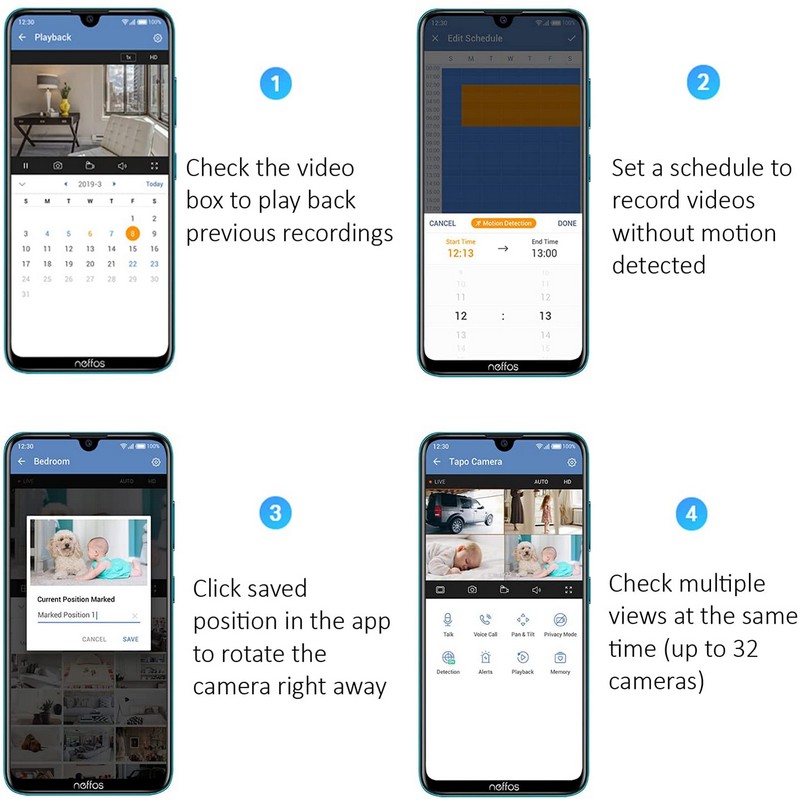 • Motion Detection and Notifications: Notifies you when the camera detects movement