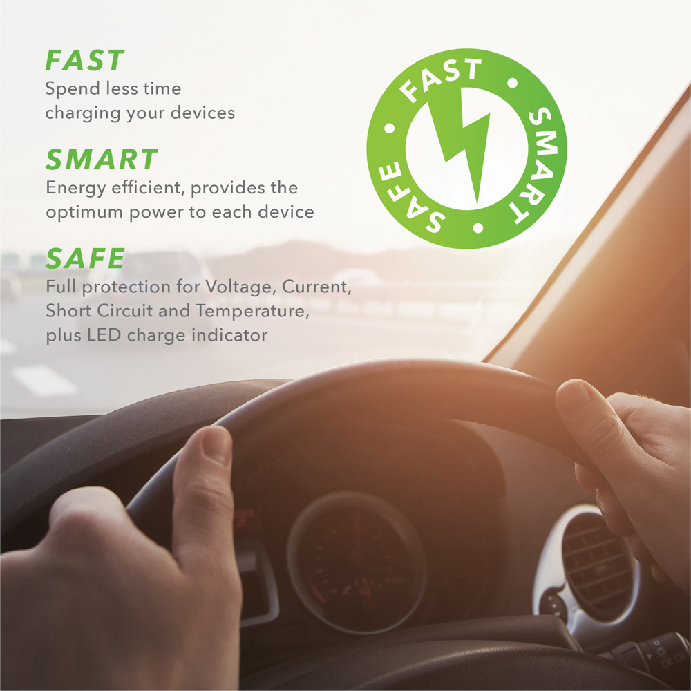 • Plug into your car’s built-in USB port or a USB Car Charger (sold separately). 7.5W / 10W output requires Quick Charge 3.0 input.