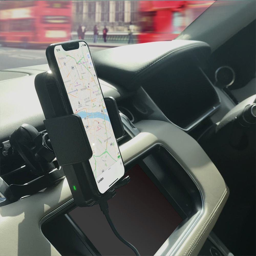 This stylish in-car Qi charging pad offers convenient charging on the go, while keeping your phone in view for directions, calls, and music. Simply place your phone on the pad and receive up to 10W FAST charging – far quicker than a conventional 5W in-car charger.