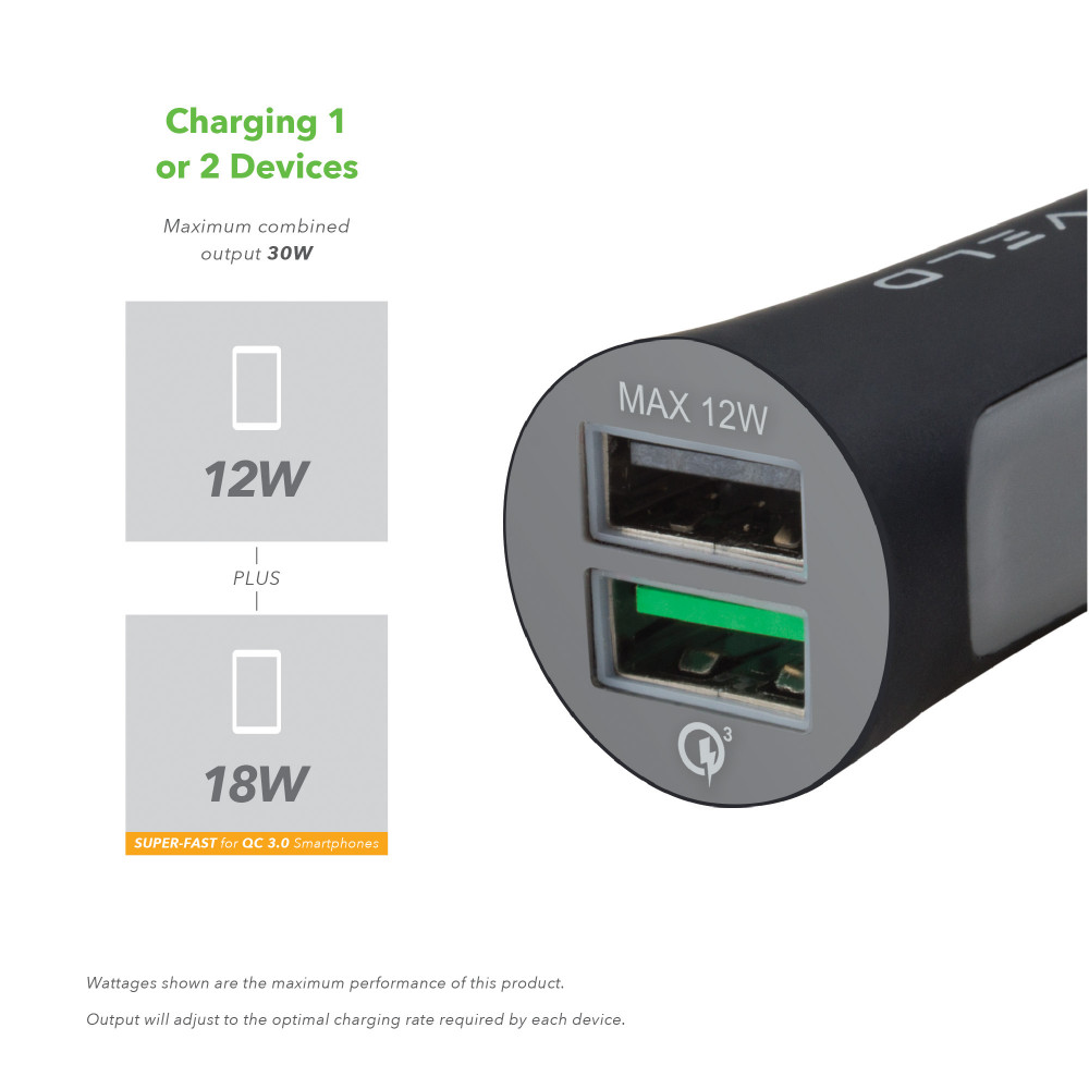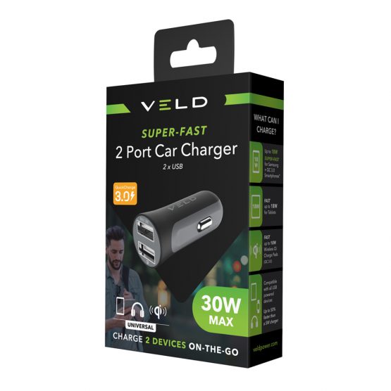 Veld Super-Fast 30W Car Charger | 2 Port | QC | VC30CB