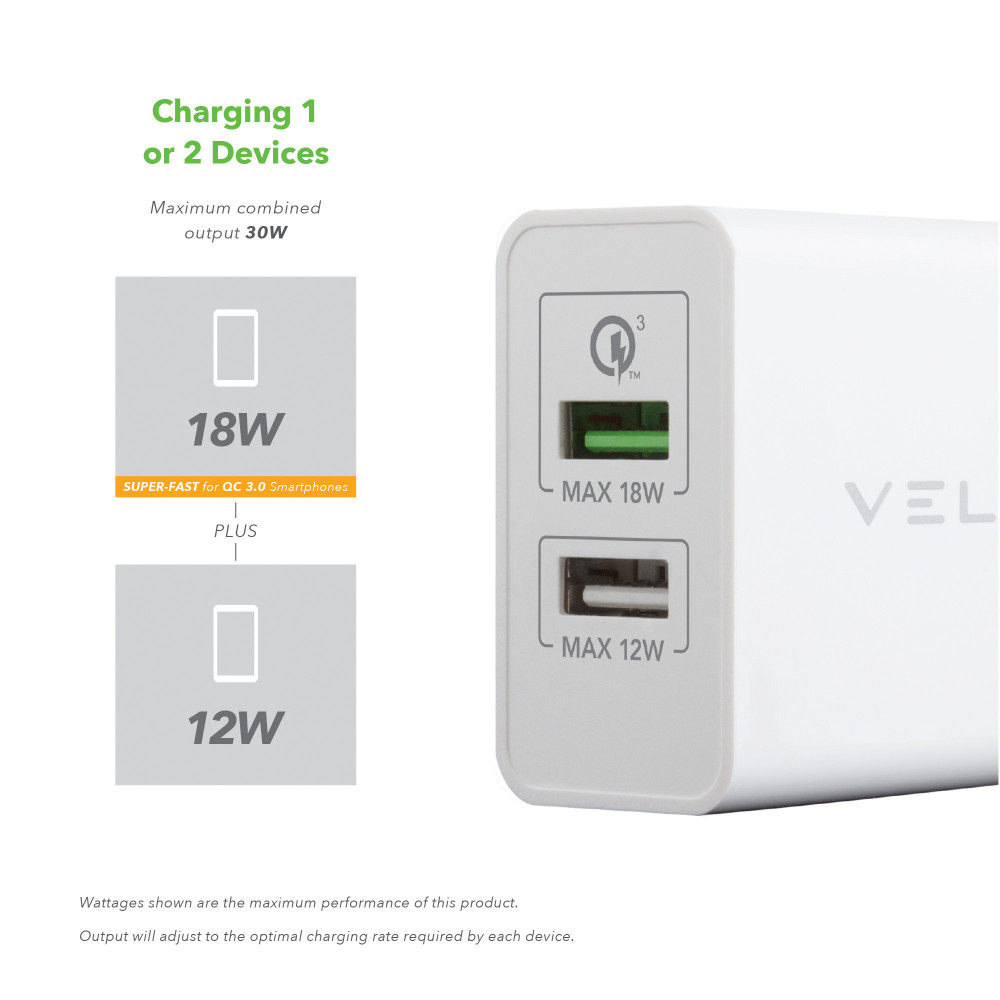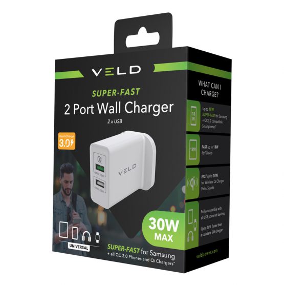 Veld Super-Fast 30W Charger | 2 Port | QC | VH30CW