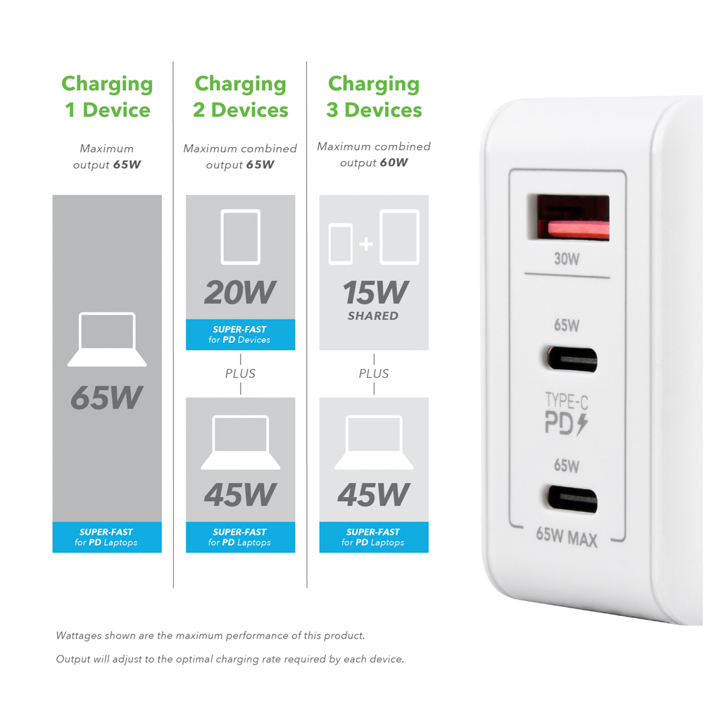 • Super-Fast charging up to 65W for Laptops, Tablets, Headphones, Smartphones and all other USB Type-C devices