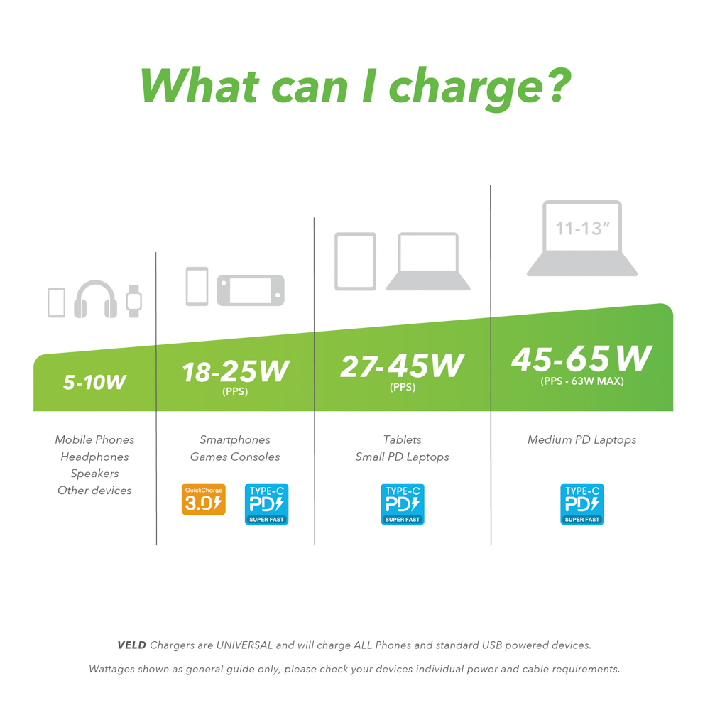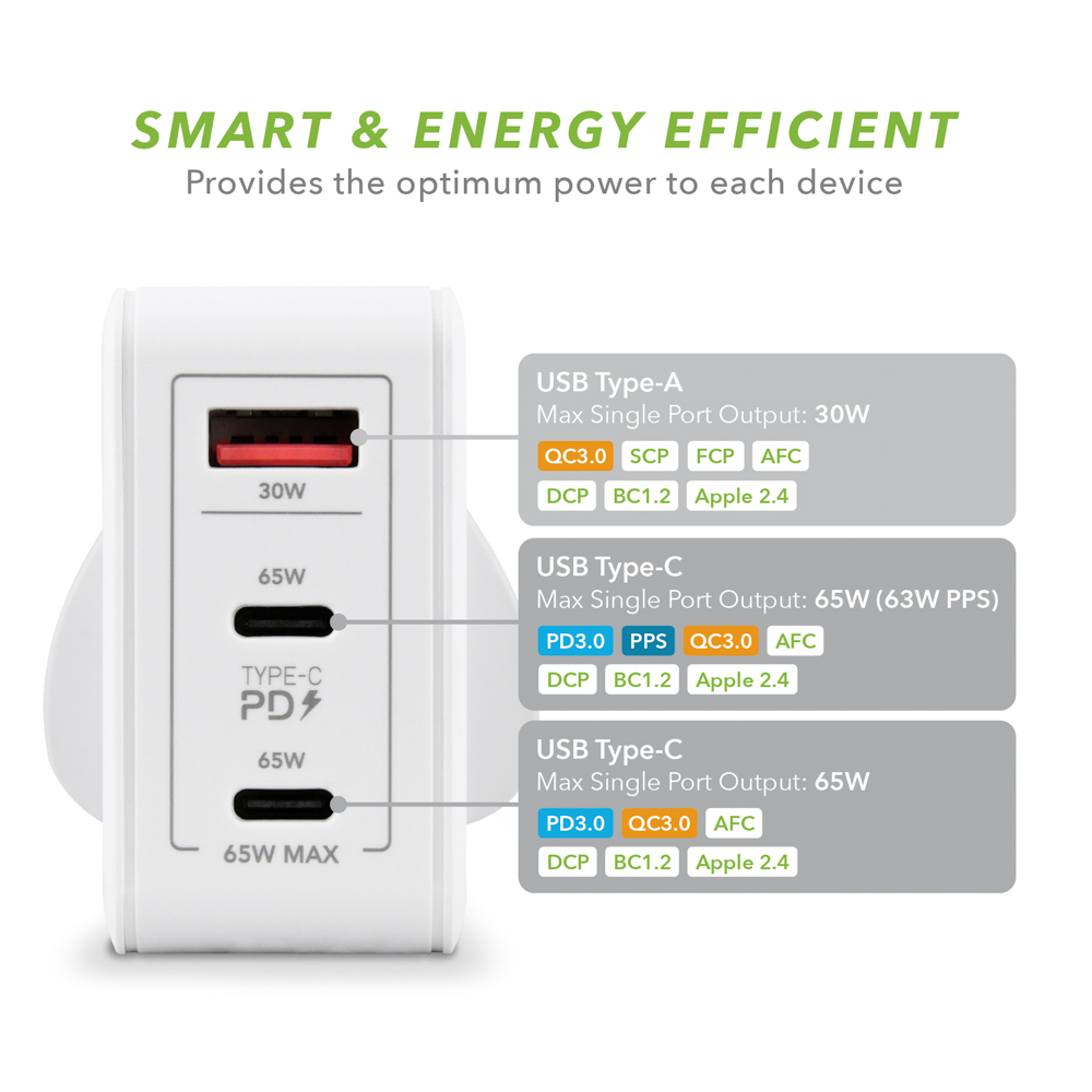 Offering super-fast, safe charging up to 65W for Laptops, Tablets, Headphones, Smartphones, plus all other USB Type-C devices and fully backwards compatible with older USB powered tech.